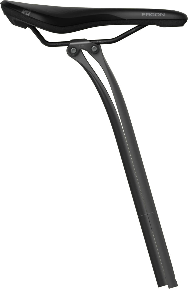 Unique comfort, lightweight and aesthetically modern: The Ergon leaf spring seatpost revolutionizes comfort on the road bike, all-road and gravel bike. Rough roads and gravel are smoothed out by the two carbon fiber VCLS leaf springs, while the saddle angle remains unchanged by the parallel displacement of the two leaf springs and the floating flip head. The precise and highly sensitive tuned leaf springs work so well that they do not affect the performance of the bike or cyclist. The CF Allroad Pro Carbon Setback model offers a 25mm of setback