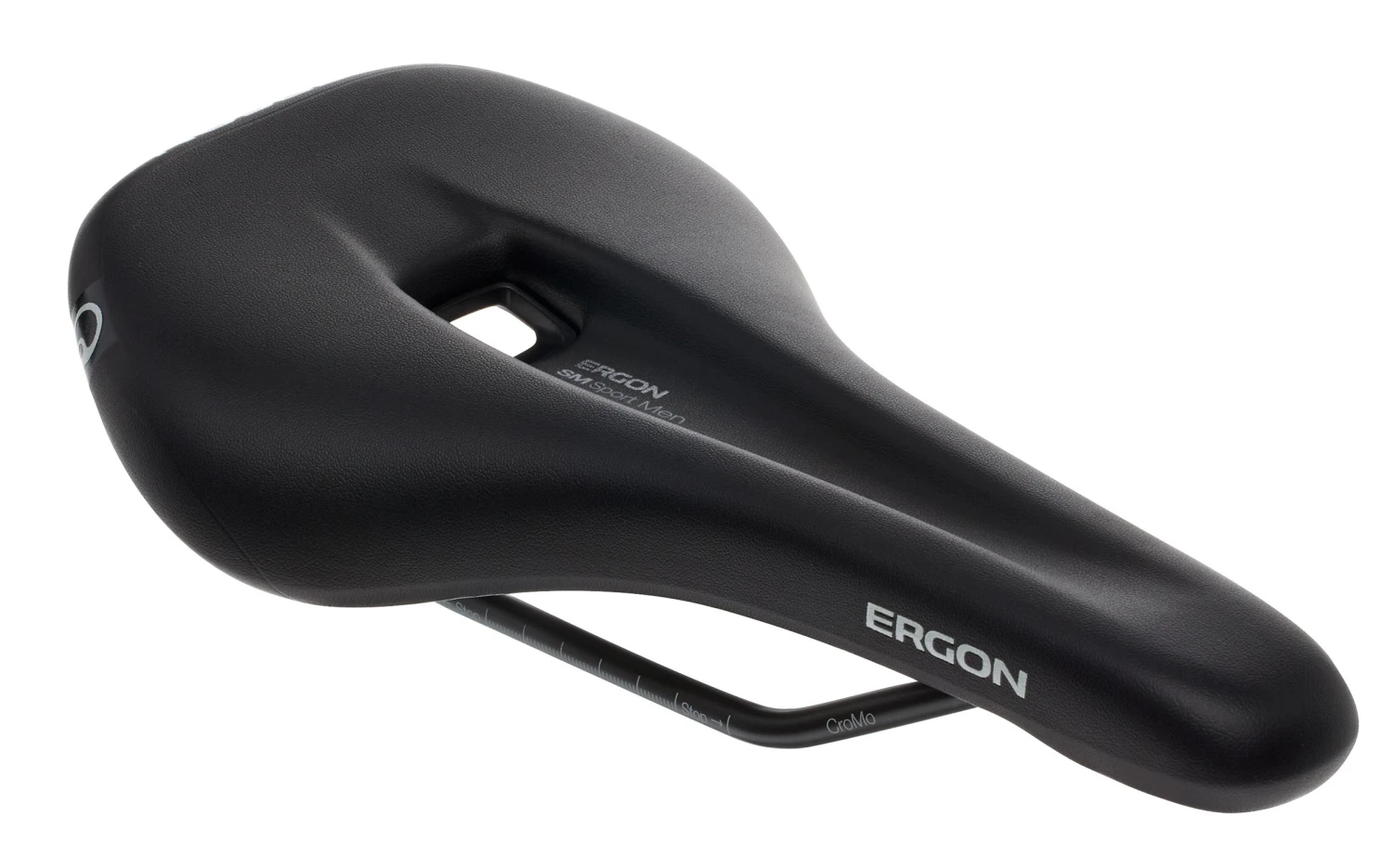 The all-around MTB saddle for men — for touring, trail and all-mountain riding. Comfort is maximized through the anatomically optimized relief channel in the sensitive perineal area and orthopedic comfort padding. The flattened rear and the Y-shape guarantee freedom of movement when in the typical mountain bike position.