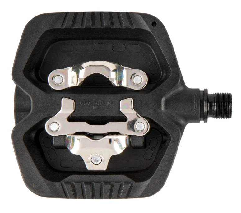 The GEO TREKKING GRIP pedals are ideal for commuting. Featuring a one-sided SPD-compatible mechanism, with a flat surface elastomer grip on the other, safe for riding in any conditions.