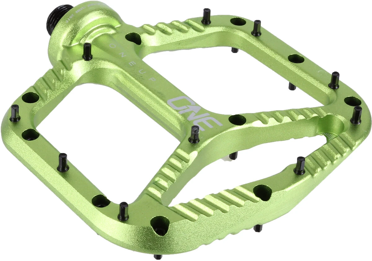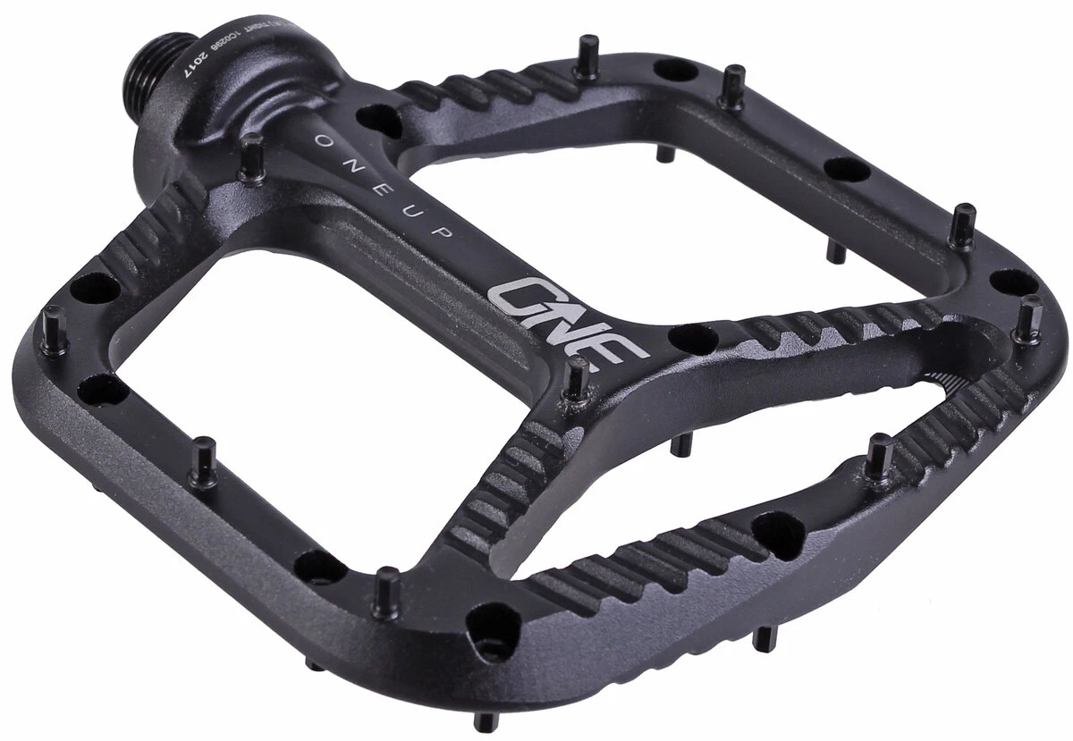 The OneUp Aluminum Pedals features a huge (115x105mm) super grippy platform with 10 rear-loading hexagonal steel pins per side to keep your feet planted on even the roughest of trails. With a weight of only 365g, the OneUp Aluminum Pedals won’t slow you down on the climbs.