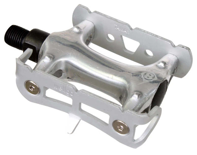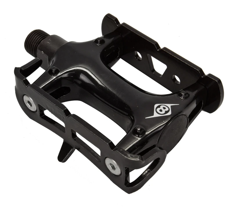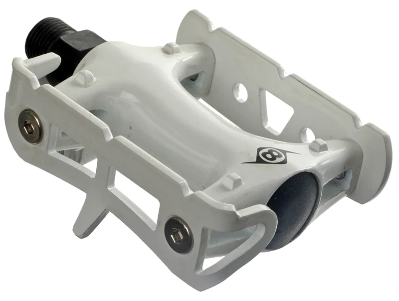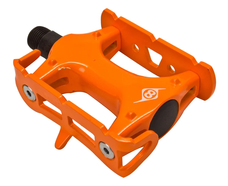 Origin-8’s Pro Track Light Pedals boast durable chromoly axles with reliable ball bearings. They feature an aluminum body and a toe-clip compatible aluminum cage, and tip the scales at 360 grams a pair.