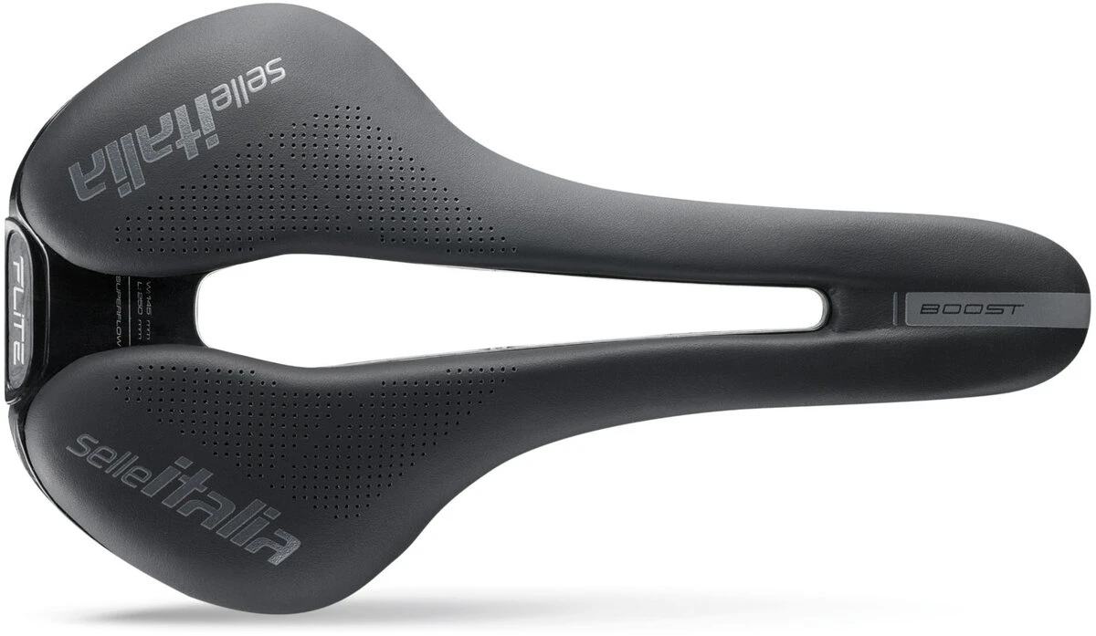 The Flite Boost resumes the classic “Flat” shape that has always distinguished the FLITE family to guarantee, together with a more compact shape (248mm of length), the usual performance and maximum stability while pedaling.