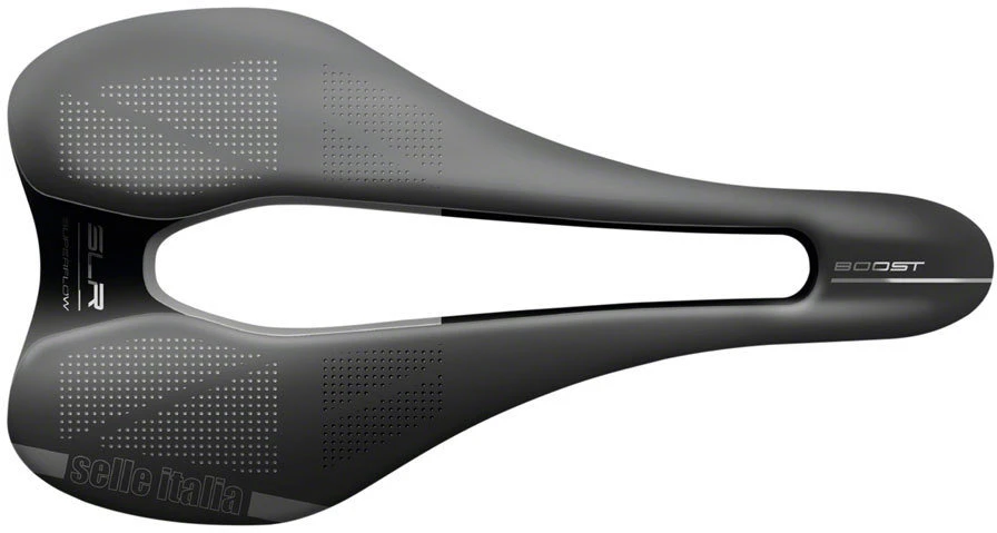Selle Italia SLR Boost saddles feature a slight rise on the back and the micro-perforated cover that helps to easily find and maintain the ideal sitting position, ensuring proper support of the ischial bones and preventing any problems. The SLR Boost has a redesigned tip that allows you to further increase the comfort in the thrust phase and to take full advantage of the features of the saddle. Moreover, the adjustments become easier, thanks to a glossy black line applied to the lower part of the body that indicates the position of the BRP (Biomechanical Reference Point), the point where the saddle reaches the width of 70mm and from which to measure the parameters useful for the right positioning.