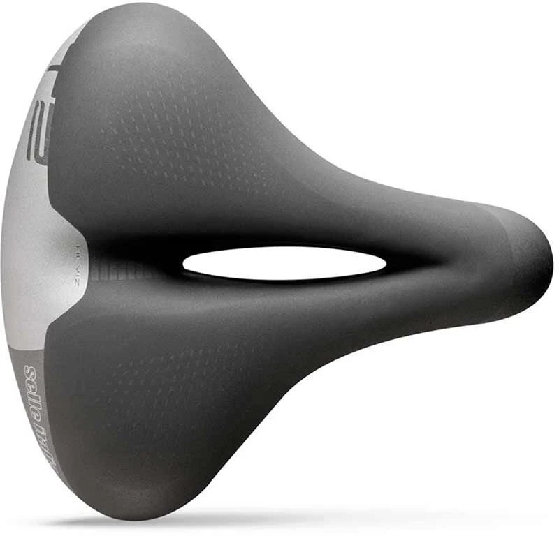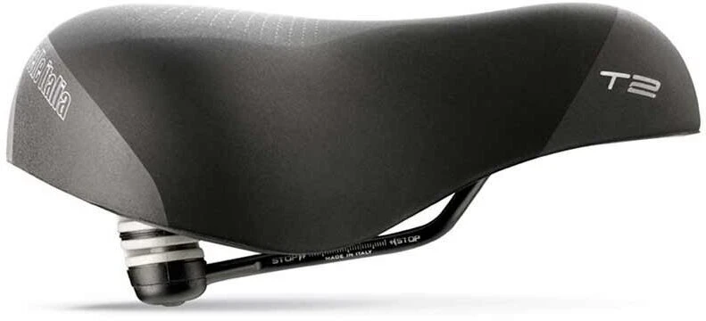 The T2 Flow makes comfort its main feature. Its wide and ergonomic seat allows any person to ride comfortably, avoiding possible problems in the ischial area. The large layer of gel inside the padding, together with the central hole for relieving pressure from the perineal area, helps to increase comfort in every situation. The Hi-Viz inserts on the back of the saddle also ensure visibility and safety at night.