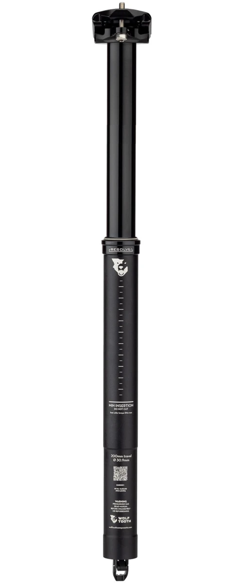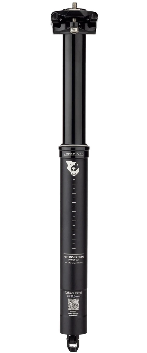 The Wolf Tooth Resolve Dropper Post is the first dropper post to use a self-bleeding cartridge. It has the shortest stack height of any dropper post on the market, has a short insertion depth, is one of the lightest dropper posts, and is completely serviceable at home.